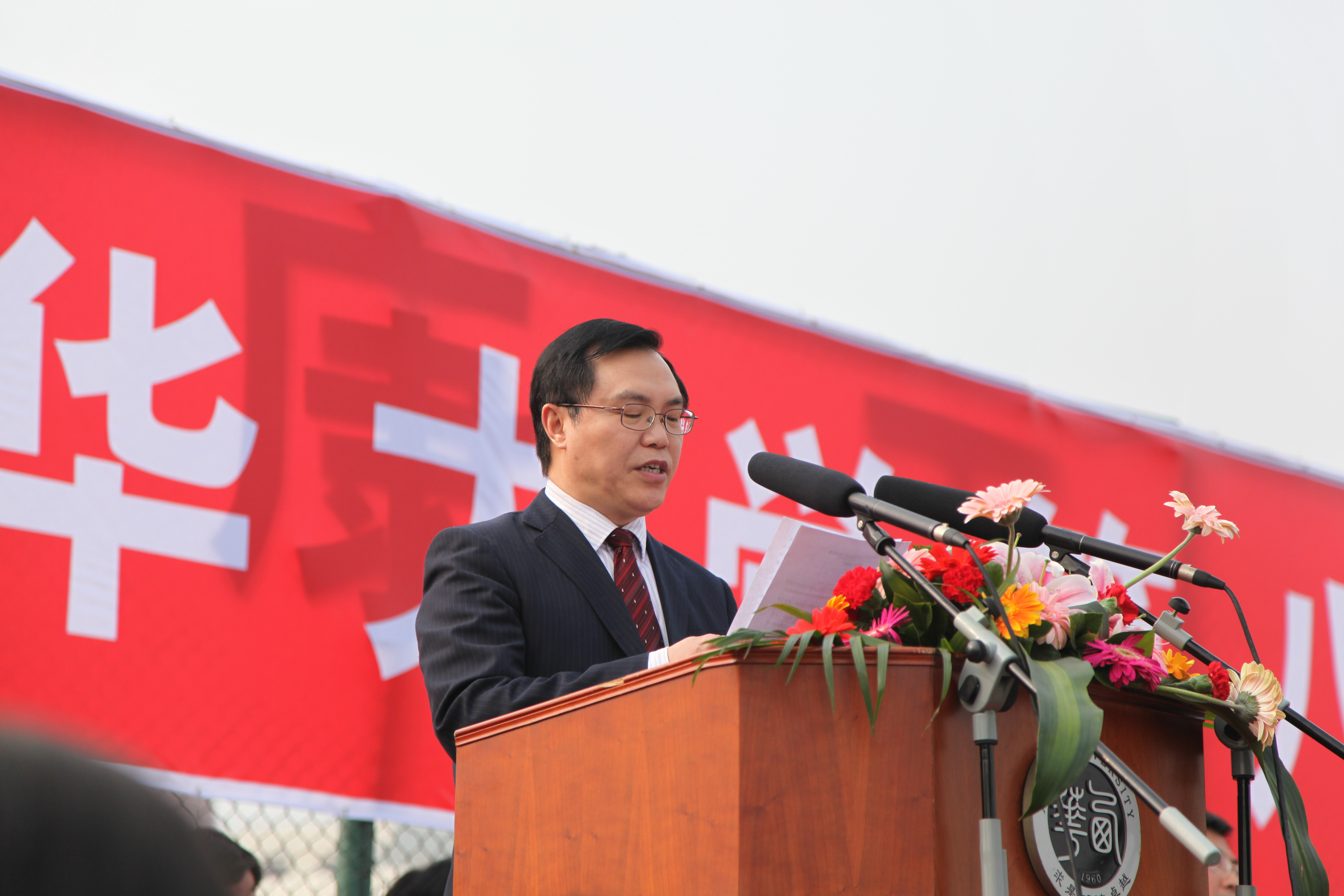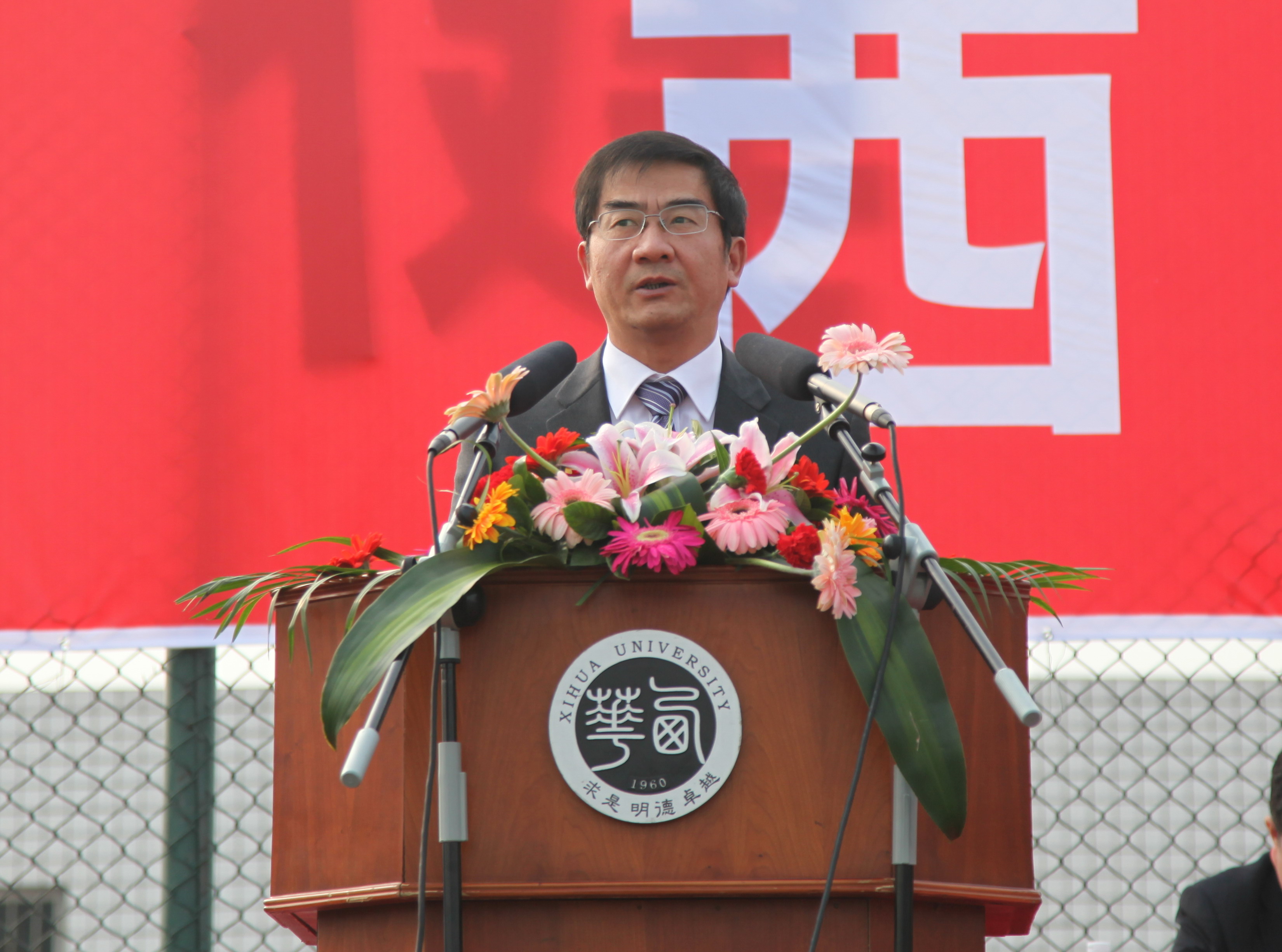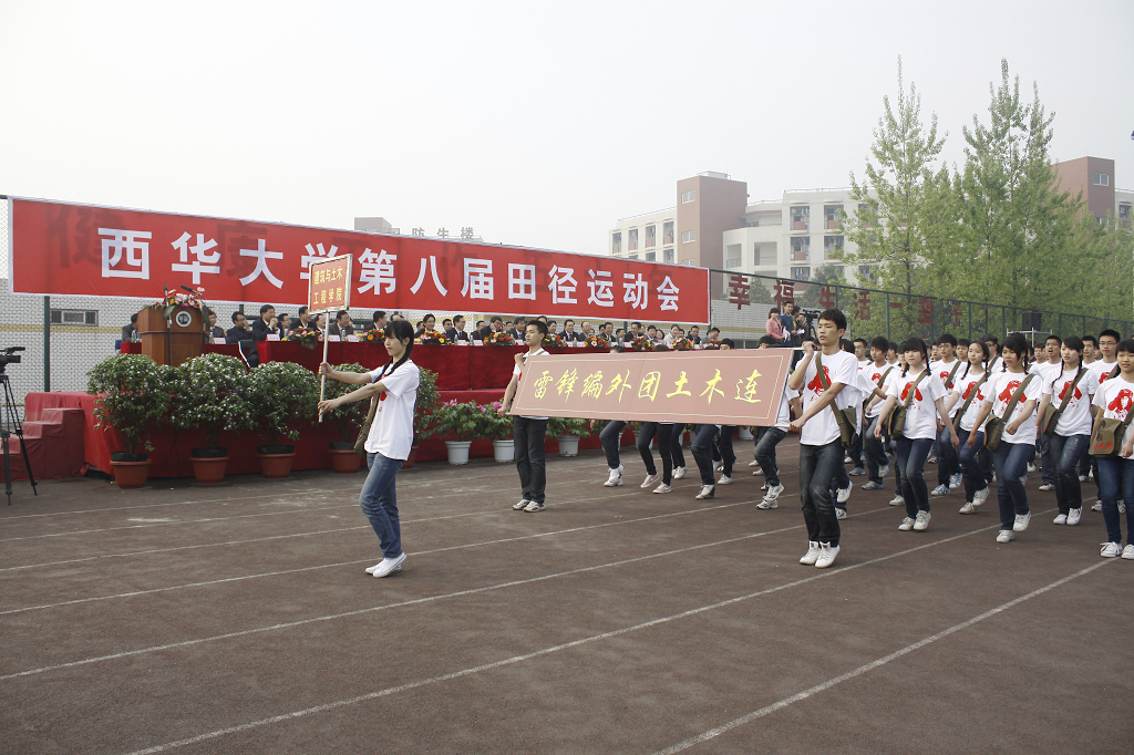 4月11日上午8:30,西华大学第八届田径运动会开幕式在临江苑足球场盛大开幕。莅临开幕式的嘉宾及领导有:国家体育总局体操运动管理中心中国啦啦操分会副主席、全国啦啦操推广委员会执行副主任、啦啦操国际级裁判邱建钢先生,校党委书记张小南,校党委副书记王小林,副校长蔡汉军、何建平、钱进、胡丹、王政书及本届运动会组委会全体成员。副校长王政书主持开幕式。