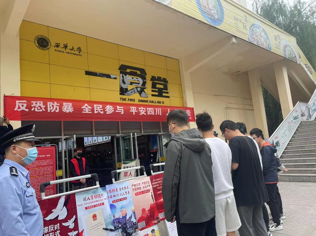 9月27日中午12点,西华大学联合属地红光派出所在学生一食堂门口进行防恐防暴宣传活动。