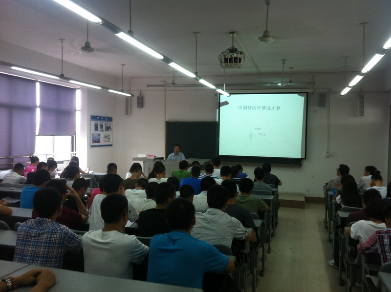 日前,由后备军官学院、西华学院、凤凰学院联合主办的以“中国梦、西华梦、成才梦”为主题的专家报告会在5B-309举行。原西华大学党委副书记曾德祥教授担任本次报告会的报告主讲人。凤凰学院党总支书记兼副院长陈召平、西华学院党总支书记兼副院长何承源、后备军官学院党总支副书记兼副院长罗开春与来自三个学院的近80名学生干部参加了报告会。报告会由陈召平主持。