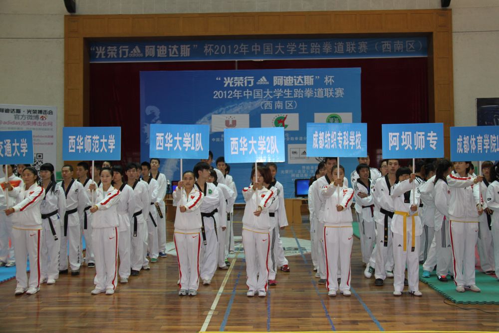10月17日上午9点,2012年“光荣行-阿迪达斯杯”中国大学生跆拳道联赛(西南区)在我校拉开帷幕。 此项赛事由中国大学生体育协会批准,中国大学生体育协会跆拳道分会主办,四川省教育厅、四川省体育局、中国大学生体育协会西南区培训基地联合协办,西华大学承办。赞助单位为光荣行(北京)体育用品有限公司。 四川省教育厅体卫艺处副处长苗建平,四川省拳跆运动管理中心主任康翔,西华大学副校长何建平,西华大学体育学院院长胡志等出席开幕式。开幕式由胡志主持,何建平副校长致欢迎辞,四川省拳跆运动管理中心主任康翔宣布比赛开始。 本次比赛共有来自四川、重庆、云南、贵州等省、直辖市的47所大专院校共计807名运动员报名参赛,赛事相关人员近千人,是我国西南地区近年来赛事规模最大的一次区域性大学生跆拳道赛事。 本次比赛共分甲、乙、丙三个组别,设置包括竞技个人、竞技团体、品势个人、男女3人团体以及混双比赛等六个大项。按照赛事计划,此次赛事将于10月19日结束。 相关链接: 2011年12月,中国大学生跆拳道协会常务委员会研究决定,将西南区大学生跆拳道项目培训基地设置在西华大学,直接负责重庆、四川、西藏、云南和贵州等省、自治区和直辖市的大学生跆拳道项目的培训、晋级晋段和比赛组织等工作。 中国大学生跆拳道协会下设东北、西北、西南、华北、华东、华南和华中七大区培训基地。 开幕式 何建平副校长致辞 比赛 |
