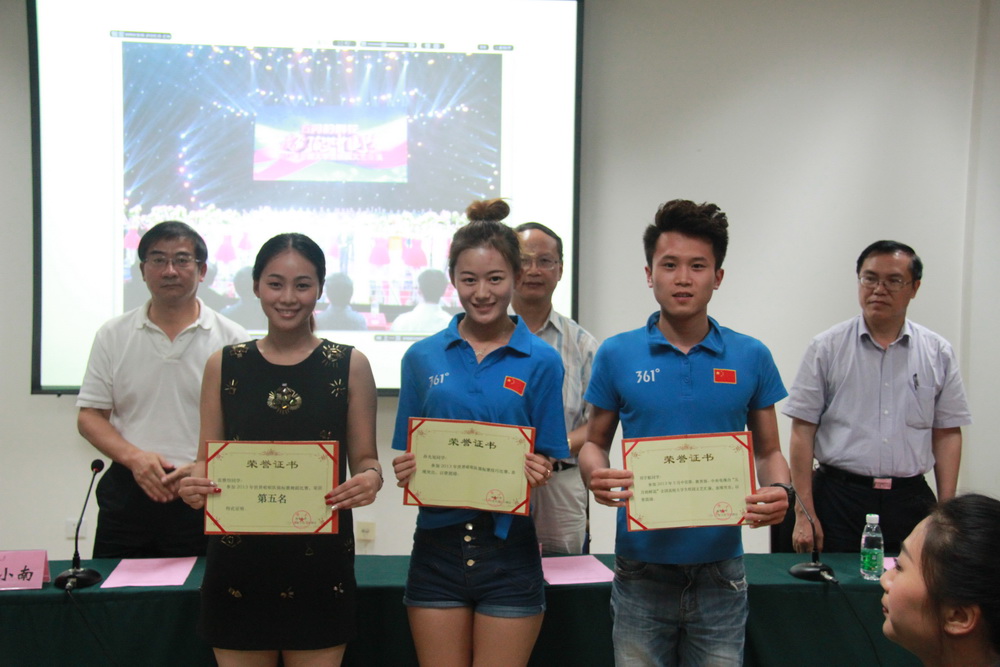 6月24日下午,西华大学啦啦操队参加世界锦标赛及艺术学院参加央视《五月的鲜花》专题晚会总结表彰会在体育馆北会议室召开,校党委书记张小南,校长孙卫国,校党委副书记王小林,副校长何建平,党委办公室、宣传部、学工部、校长办公室、教务处等部门负责人,艺术学院、体育学院的领导以及师生代表参加了此次会议。 王小林副书记主持会议。他就今年4月下旬西华大学啦啦操队出征2013年啦啦操世界锦标赛和艺术学院参加中央电视台《五月的鲜花》专题晚会表演的相关情况和取得的成绩作了简要介绍。在美国奥兰多举行的2013年啦啦操世界锦标赛中,西华大学啦啦队从全球147个参赛国家中脱颖而出,荣获世界国际公开组舞蹈啦啦队花球组第5名、爵士组第7名的好成绩。5月4日,艺术学院刘青青、杨玉蓉等10名舞蹈系的同学,在路耀武副教授的带领下,参加了由中宣部、教育部、共青团中央主办的“五月的鲜花,我们的中国梦”——2013年全国大学生校园文艺会演,“西华大学”的名字再次出现在全国亿万观众的面前。这两支队伍都为学校争了光,为学校添了彩,充分展示了学校的育人成果与西华学子的青春风采,这也是学校学风建设取得的重大成果。与会校领导现场为两支队伍获奖学生代表进行了颁奖,充分彰显了学校坚持特色发展战略的坚定决心。 会上,两支队伍的“教练”——艺术学院副教授路耀武和体育学院副教授张讴分别深情地讲述了鲜为人知的“幕后”故事。路老师说,让学院的孩子们参加《五月的鲜花》一直是他心中的梦想,通过不懈努力与沟通,这颗梦想的种子终于发芽了。在央视排演的11天中,他们每天不停地排练,汗水打湿了练功服,却只能吃着没有味道的盒饭,央视主持人董卿和朱军向他们打趣道:“怎么样?央视的盒饭是不是特有味道?你们以后一定要常来吃,常来表演。”主持人的肯定让他和同学们受到了鼓舞,当看到晚会播出时字幕上滚动过的“西华大学”四个字时,路老师心中的自豪感油然而生,他表示在以后的舞蹈教学工作中一定更加努力,让学校的舞蹈艺术走得更远。啦啦操队的“老大”——张讴教练以一句颇为风趣的“请允许我站着说话,不是因为我高,我只是怕你们看不到我”开始了她的感言。“啦啦操队走到现在很不容易。从最初连节拍都踩不准,到一个个高难度的动作,从初学的新手到自信的舞者,从国内走向世界,坚持和汗水,鼓励和支持,我都看在眼里……”她希望队员们不管是即将离开还是继续奋斗,都一定要保持一颗个性而自由的心,做一个有思想、懂感恩而自信的人。 接下来,三位学生代表作了发言。来自艺术学院2010级舞蹈表演专业的王紫薇就自己参加《五月的鲜花》专题晚会的收获和感受进行了阐述,并对学校和学院的大力支持表示衷心的感谢。啦啦操队舞蹈队队长、建筑与土木工程学院2010级工程造价专业的李娉婷和技巧队队长、体育学院2009级体育教育专业的刘嗣立在发言中则强调了梦想的力量,西华大学啦啦操队跨越170多个经度,最终站在了奥兰多的舞台上,正是因为有了责任、担当、乐观顽强和荣耀作为梦想的翅膀来保驾护航。最后,啦啦操队全体成员起立喊出了口号:“Merry merry go go fighting fighting 西华大学,争第一!”现场气氛热烈。 张书记、孙校长在讲话中都对两支队伍取得的成绩表示了祝贺,对师生在训练中、比赛中、表演中展现出来的拼搏精神给予了充分肯定。张书记指出,两支队伍的成功,是西华大学走特色发展之路的具体体现,也是“知难而进、自强不息”的办学精神的具体体现,学校要想在强手如林的竞争中抓发展,就必须要有一种追求,要有一种精神,学校必须继续坚持特色发展战略,以事业心和责任感为导引、以执着和坚持为动力、以特色为道路,要在全校大力倡导两支队伍所表现出来的坚持与奋斗精神,不断充实发展“西华精神”,激励广大教职工为实现西华大学的强校梦而努力奋斗。孙校长指出,同学们取得的每一点成绩,都是学校的荣耀,无论你们在哪里,你们都是西华人,希望你们一如既往地秉持着拼搏精神、团队精神,勇抓机遇,为校争光。 总结表彰会结束后,参会人员在体育馆场外合影留念。