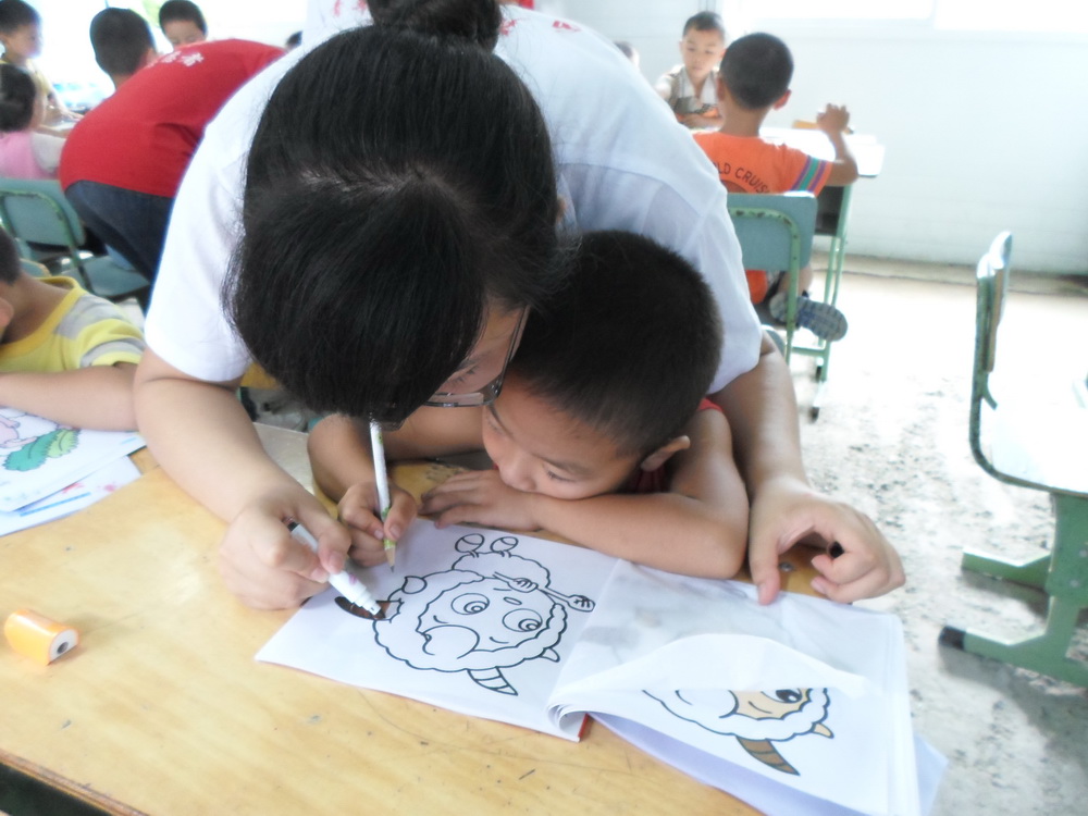 志愿者教小朋友绘画