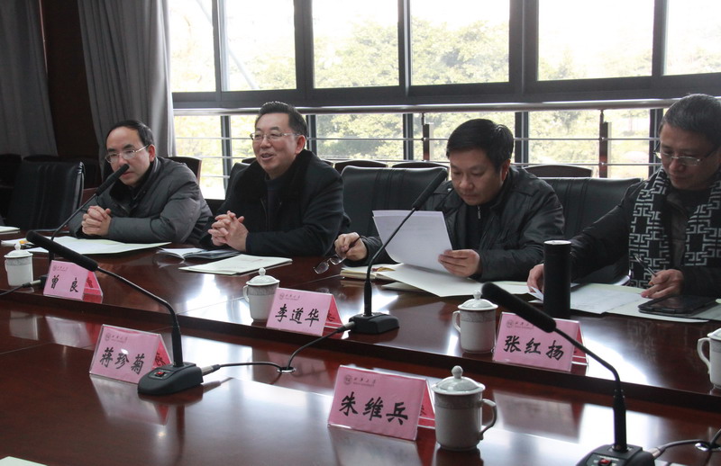 1月8日上午,内江师范学院副校长曾良、黄辉一行9人来我校考察交流,受到了副校长李劲松、计划财务处、教务处、科技处、学科建设办公室、人事处等部门负责人的热情接待,并一同在行政楼212会议室召开交流座谈会。