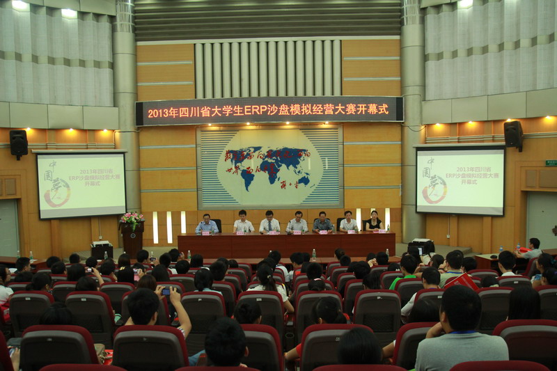 6月8日上午8:30,由四川省教育厅主办、西华大学承办、用友新道科技公司技术支持的2013年四川省大学生ERP沙盘模拟经营大赛在我校四教报告厅举行开幕仪式。西华大学副校长何建平、用友新道科技有限公司校企合作部总监史磊、西华大学教务处处长马力、教务处副处长黄琦、校团委副书记易宇峰,管理学院党政领导,学工办与团委负责老师,以及来自四川省各大高校的20支队伍近200人参加开幕式。开幕式由管理学院院长章道云主持。 开幕式在嘹亮的国歌声中拉开序幕。何建平副校长致开幕词。他代表西华大学向出席本届比赛的各位领导、指导老师、参赛选手和裁判员表示热烈的欢迎,并介绍了西华大学近年来在学生创新能力培养方面取得的成绩,最后衷心祝愿各校参赛选手取得佳绩。 随后,用友新道科技有限公司校企合作部总监史磊先生致辞,指导教师代表惠宏伟与学生代表徐忆分别发言。最后,所有出席开幕式的领导和嘉宾合影留念。 据悉,在接下来的三天时间里,参加本次比赛的20支队伍将会在没有硝烟的战场上拼搏,决出胜负。 ERP沙盘模拟大赛简介 ERP是Enterprise Resource Planning (企业资源计划)简称,是上个世纪90年代由美国Garter Group咨询公司根据当时计算机信息、IT技术发展及企业对供应链管理的需求,预测在今后信息时代企业管理信息系统的发展趋势和即将发生变革,而首先提出了这个概念。它把企业的物流、资金流、信息流统一起来进行管理,以求最大限度地利用企业现有资源,实现企业经济效益的最大化。 ERP沙盘模拟大赛采取的是一种体验式的互动方式,让参赛者在比赛中体验ERP的管理理念。在比赛中,每个团队5人,各代表着CEO(首席执行官)、CFO(首席运营官)、营销总监、生产总监、采购总监。 各职能中心涵盖了企业运营的所有关键环节:战略规划、资金筹集、市场营销、产品研发、生产组织、物资采购、设备投资与改造、财务核算与管理等几个部分为设计主线,把企业运营所处的内外环境抽象为一系列的规则,每个团队经营一个拥有1亿资产的销售良好、资金充裕的虚拟公司,连续从事6-8个会计年度的经营活动。 通过直观的企业经营沙盘,模拟企业实际运行状况,内容涉及企业整体战略、产品研发、设备投资改造、生产能力规划与排程、物料需求计划、资金需求规划、市场与销售、财务经济指标分析、团队沟通与建设等多个方面。每个公司团队都面对同行竞争对手、产品老化、市场单一化等的重大挑战,在挑战中将根据自身的实际情况采取不同的应对策略,最后将会以一定的指标综合评价各个团队所模拟公司的经营状况,并按经营状况的好坏评出参赛团队的名次。