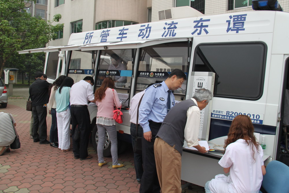 5月8日,成都市公安局交管局车管所 “谭东流动车管所”走进我校,在三教求是广场现场为广大师生办理各项车管业务,方便、快捷、优质、实惠的服务受到师生的好评。现场享受了“一站式”便捷服务的我校经济与贸易学院曾建民老师连声称赞:“车管所的贴心服务模式真是省时省事又省心,太方便了。过去我换一个证,要花大半天时间,排队、体检、再去车管所排队,很费时。” 相关链接: