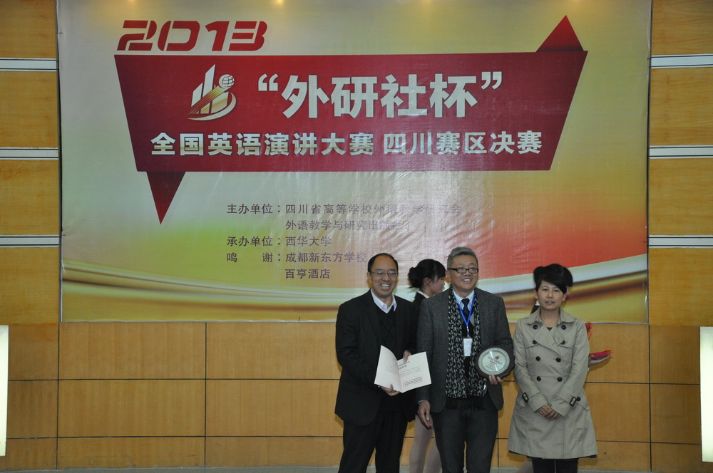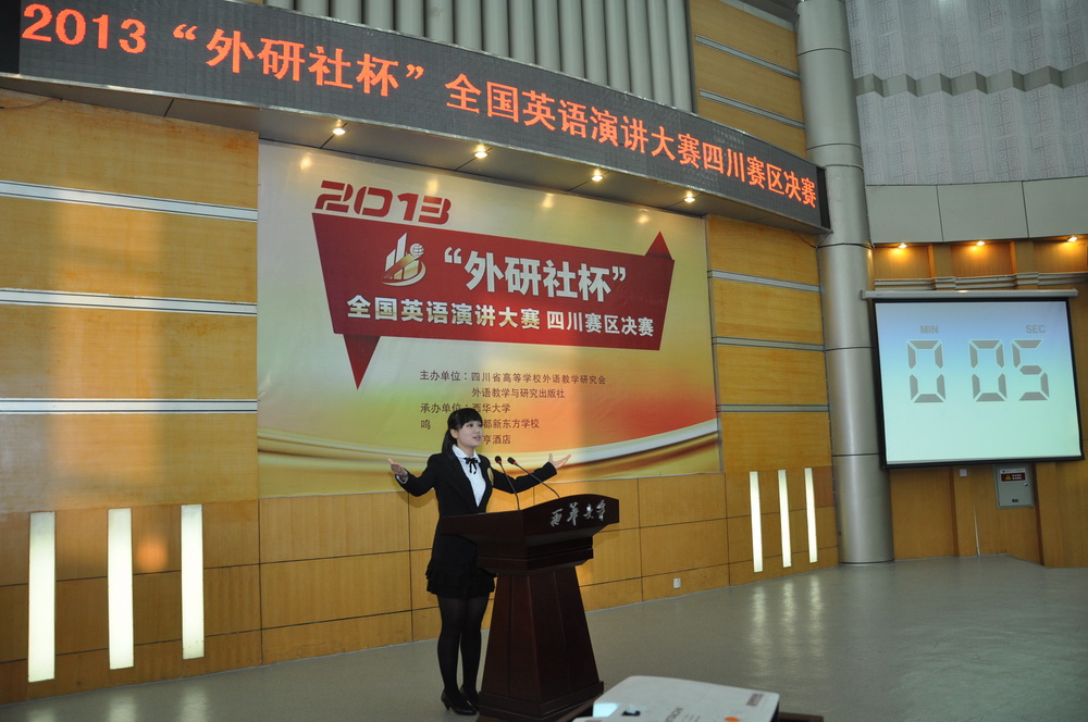 11月16日,2013“外研社杯”全国英语演讲大赛四川赛区决赛在我校四教报告厅举行。来自四川大学、电子科技大学、西南交通大学、西南财经大学等37所川内高校的43名参赛选手围绕“When Socrates Meets Confucius(当苏格拉底遇上孔子)”这一题目展开了精彩演讲。我校正厅级调研员钱进,四川省高等学校外语教学研究会秘书长黎宏,外研社西南信息中心主任戴本文、外研社高等英语分社市场部经理王海燕,校团委主持工作副书记王唯洁,教务处副处长黄琦及外国语学院领导出席了本次赛事。 比赛现场,选手们从不同角度多个方面对命题演讲题目进行了精彩的诠释,展现出了英语口语娴熟的风采。他们在舞台上自信满满、富有激情,演讲中有思想、有新奇的想法、有自己独到的见解。在即兴演讲和答问环节更是展示出了选手们的英语水平、反应能力以及个人的综合素质,赢得现场老师和同学们热烈的掌声,将比赛一次次推向高潮。整个会场座无虚席,大多数观众都是来自外国语学院的同学,这次比赛给他们留下了深刻的印象,让他们获益匪浅。“我是学英语专业的,想更好地、更多地了解学习英语,所以,我抱着求学的目的来到这里。看选手如何发音、如何阐释自己的观点、如何即兴作答的。”外国语学院付小虹同学表示。“ 这次比赛,我觉得提问环节非常好,不仅可以考验选手们的临场发挥,而且可以从中看出他们对问题分析的思维角度,侧面反映他们的个人修养和综合素质。”外国语学院的苟静同学说道。 最终,来自西南石油大学的曾雅丽、西南民族大学的袁方唯、四川大学的徐逸逖获得本次演讲决赛的最高奖——特等奖。他们将在12月代表四川省的选手赴北京参加2013“外研社杯”全国英语演讲大赛总决赛。本次比赛共颁发了3个特等奖、1个一等奖、2个二等奖和3个三等奖。西华大学荣获最佳组织奖,我校推荐选手外国语学院2010级商务英语1班的刘静获得最佳潜力奖。 四川大学外国语学院副院长、博士生导师任文教授在闭幕式讲话中对我校本次演讲大赛组织工作进行了充分的肯定及高度的赞扬,她介绍说英语演讲及表达能力是国家未来发展对高端人才的基本要求,“外研社杯”全国英语大赛作为英语界的重要赛事,对高校英语教学和优秀人才培养发挥了重要作用。我校外国语学院院长陈达表示,此次大赛能由西华大学承办,是一次难能可贵的学习和进步的机会,大赛不仅让学生们长见识、也让老师们受益。 据悉,“外研社杯”全国总决赛将于12月8日至13日在北京举行,届时通过层层选拔脱颖而出的来自全国各地的优秀学子将汇聚在一起,进行实力角逐。 链接: “外研社杯”全国英语演讲大赛是由教育部高等学校大学外语教学指导委员会、教育部高等学校英语专业教学指导分委员会及外语教学与研究出版社共同主办,而本次四川赛区的决赛则由四川省高等学校外语教学研究会联合外语教学与研究出版社主办,西华大学承办。“外研社杯”全国英语演讲大赛于2002年创办,是面向全国高校在校大学生的公益赛事,到目前为止已连续成功举办11届,在国内外广受关注,已成为全国参赛人数最多、规模最大、水平最高的英语演讲赛事。大赛以高远的立意和创新的理念,汇聚全国优秀学子,竞技英语表达与沟通艺术,每年通过校级初赛、省级决赛、全国总决赛等选拔出优秀人才。