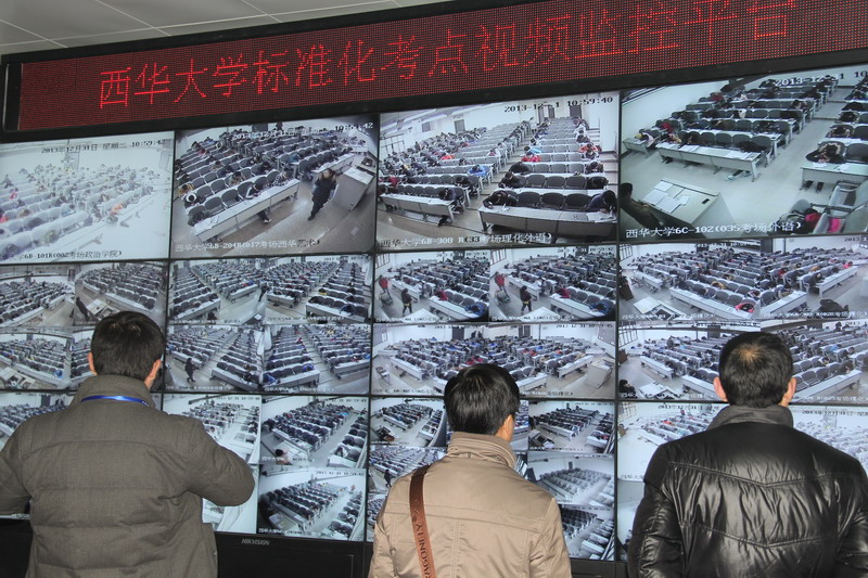 继中期考试集中巡考之后,学校进一步加强期末集中考试巡考。12月31日上午10点,在副校长何建平的带领下,由教务处、各学院分管教学副院长组成的巡考组来到旧图书馆一楼标准化考场监控中心,查看期末考试六教57个考场的实况视频。 本次期末集中考试为期两周(18-19周,12月30日-2014年1月9日),共设794场次考试,参考教学班495个,监考教师1719人次。为加强考试管理,防止学生考试违纪和作弊,切实转变考风,教务处、学生工作部(处)、各学院分别继续组织巡视组,深入考场巡考。 从目前检查情况来看,学校考场秩序和考风进一步好转。