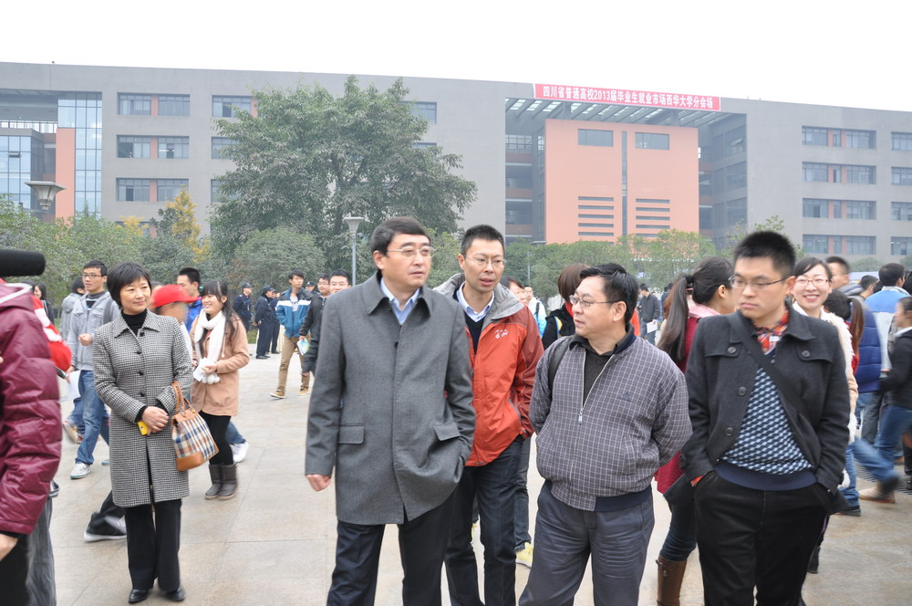 四川省教育厅高校学生工作处处长李孝武(前排右二)与王小林副书记一行在招聘现场
