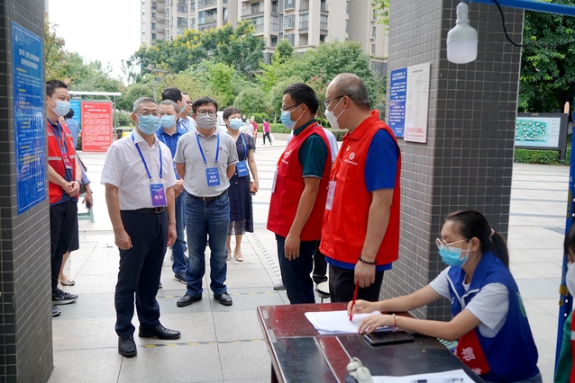 根据成都市新冠疫情防控指挥部的最新通知要求,9月5日0时至9月7日24时,郫都校区和西华苑(北苑)继续开展全员核酸检测。9月5日上午,校党委书记、疫情防控工作领导小组组长余孝其带队深入校园内18个核酸检测点,检查指导全员核酸检测工作,看望慰问核酸检测医生护士、党员志愿服务队、学生青年志愿者等一线抗疫工作人员和在校师生。校党委副书记、校纪委书记朱燕萍,校党委副书记张力,副校长郑鈜,学校疫情防控工作领导小组办公室相关人员陪同检查看望。