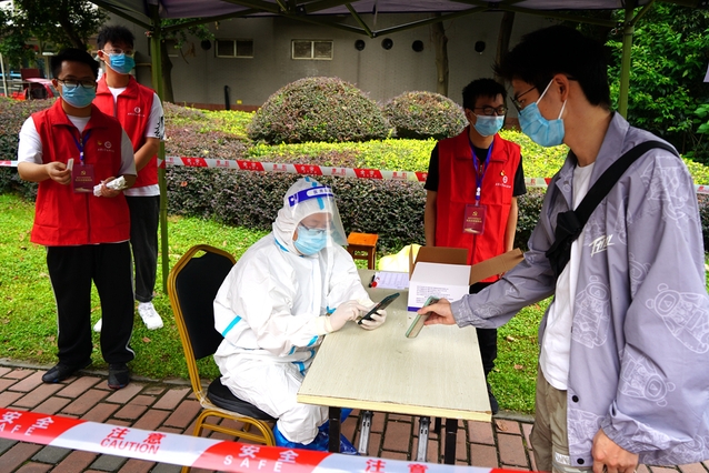 据悉,学校党委组织部向全校共产党员发出在疫情防控中当先锋作表率的倡议后,全校共计一千余名党员积极报名参与。今天全校18个核酸检测点位共有21名教师党员志愿者承担了核酸检测登记扫码工作。戴口罩、穿防护服、几个小时不能喝水上厕……志愿者的艰辛,只有他们自己感受体会最深。