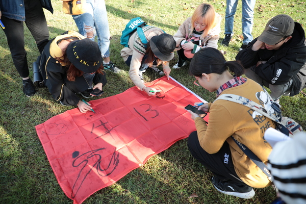 分组完成后活动正式开始,首先进行的是热身活动,各组讨论选出队长、确认队名、设计队旗并用水彩笔画出属于各自队伍的图案。在队旗设计完成后,各队进行自我介绍,熟悉本队成员。接着各队分别进行队旗展示,大家充分发挥了想象力和创造力,各队的队名和队旗惊艳全场。