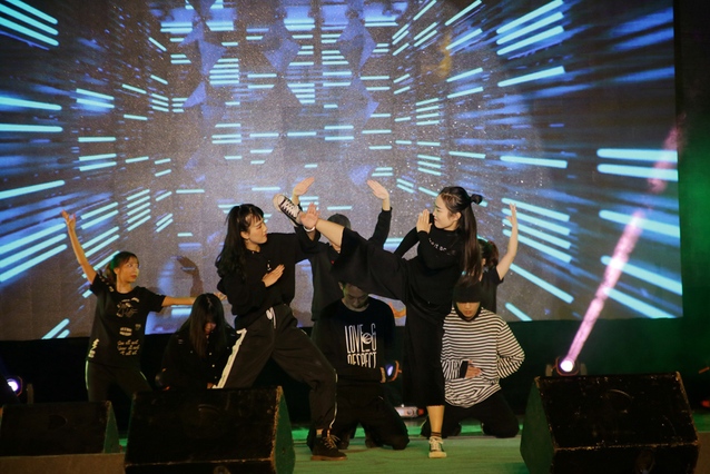 现场舞台璀璨、灯光闪烁,伴随着观众们热烈的掌声与呼声,音乐节正式拉开了序幕。首先,西华大学啦啦队带来了激情四射,活力满满的啦啦操,成功点燃了现场氛围。紧接着,各种节目轮番登场,异彩纷呈。舞蹈、独唱、表演唱、舞台剧等多类的表演形式,多角度地展现了我校学子的青春热血与活力。无论是校园好声音代表纪俊杰深情演绎的《那些你很冒险的梦》,还是黄珂用高亢浑厚的嗓音演唱的《惯性定律》,皆以情动人,娓娓动听。艺术团舞蹈队的《忍者》、拼客舞社的《PINK MONSTER》和Uc舞社的《NOW U C ME》这三个节目各具特色,不同类型的音乐与变化多端的舞姿交织,引来在场观众的阵阵掌声。西华大学广播台的同学们带来的节目《海草拳王争霸赛》《王子和他的公主们》也相继亮相,诙谐的舞蹈加上纯英文的舞台剧,给观众们留下了深刻的印象。
