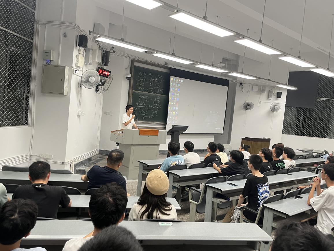 王晓明老师以本专业的实力介绍作为讲座的开始,向同学们详细地讲述了本专业的六大优势。雄厚的师资力量以及实验室完整的设施配备,让同学们交口赞誉。紧接着,王老师向同学们提出了就业还是深造这一问题,在同学们的沉思中,王老师给大家指明了方向,详尽地分析了这两条道路的利弊,让同学们对未来的发展也有了一定的认知。最后,王老师向同学们强调了学好本专业对于国家科技发展、民族振兴的重要意义,并寄以2023级全体新生希冀。