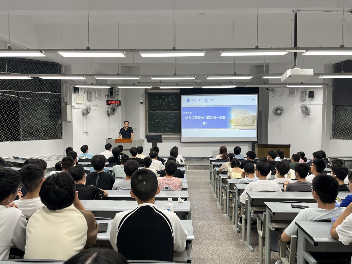近日,计算机与软件工程学院2023级软件工程专业在6B103召开了专业介绍讲座,本次讲座由软件专业系主任王晓明老师主讲,旨在帮助同学们了解本专业的学习模式和方法,拉进老师、同学与专业之间的距离,同时分享了本专业的课程体系和培养目标,让同学们在以后的学习中能够快速适应并行稳致远。