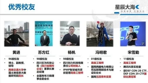 有很多学长学姐毕业后在知名企业腾讯科技、阿里巴巴、百度科技等工作;也有学长学姐前往国防科技大学、浙江大学、北京师范大学、四川大学、电子科技大学等深造;还有学长学姐进行自主创业,创办了乐为科技、创力科技、博智云创科技等企业。