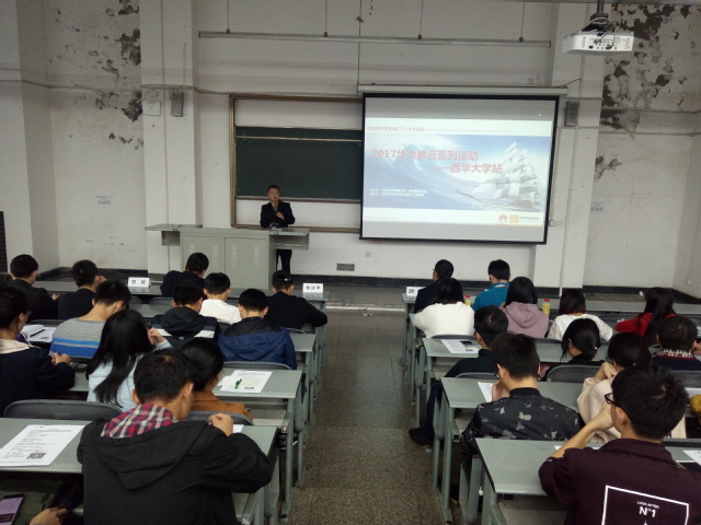 10月26日下午4:00,计算机与软件工程学院在6B-307举办就业指导会,大会邀请泰克网络实验室来校开展2017华为 “耕云”活动。华为成都代表处产品总监、高级工程师叶华,泰克教育集团成都分公司总经理张艳苗,华为技术专家陈智明,学院党委副书记毕达平,学院2015、2016级学生参加了此次就业指导会。