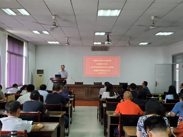 9月10日,计算机与软件工程学院召开全院教职工大会,传达学习学校干部大会精神,部署新学期重点工作。全院教师参加会议。