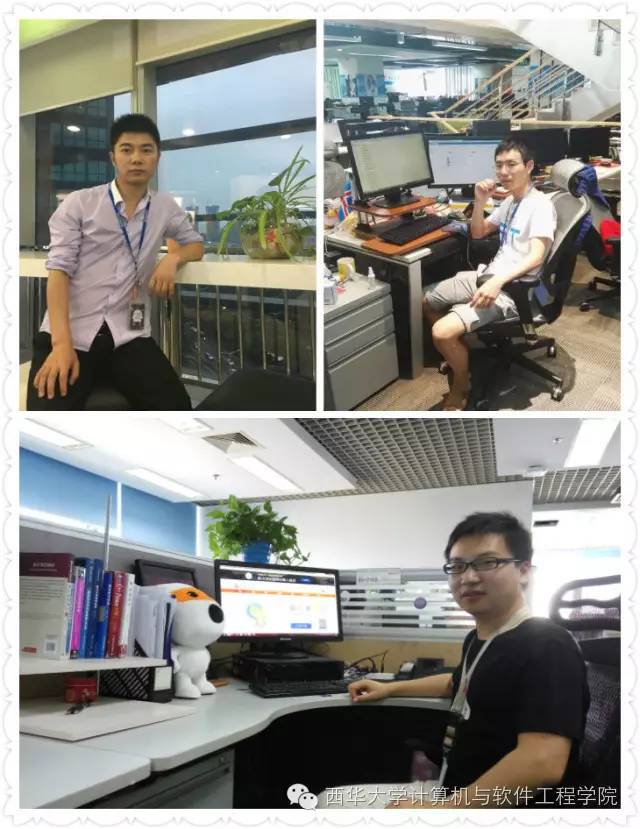 卢小旭,著名游戏音乐制作人,代表作包括《QQ斗地主》、《天龙八部》、《诛仙》、《我叫MT》、《洛克王国》、《热血三国》,游戏主题歌《完美世界》(水木年华)、《天边的眷恋》(金莎)、《修仙缘》(陈楚生)。2003级计科专业鲁*:嗨游互动CEO、百纳成都总经理;2006级软件工程专业陈*:成都印象全景科技有限公司CEO;2008级软件工程专业姚*:成都驰骋职讯信息技术有限公司CTO;2011级软件工程专业张*:成都微力互动科技有限公司CEO;2011级软件工程专业邱*:成都果心科技有限公司CEO。工作环境怎么样?那当然是一个字:好,好,好!一个人坐拥几台电脑,想象一下是一种怎样的感受?
