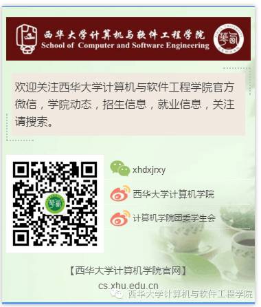 学院拥有软件工程和计算机科学与技术2个一级学科硕士点,计算机系统结构、计算机软件与理论、计算机应用技术、信息安全5个二级学科硕士点。以及信息安全、数学建模、西华大学思科网络联合实验室、西华大学Intel嵌入式系统联合实验室、软件工程、物联网工程等11个专业实验室。Intel、Cisco、Oracle、RS联合实验室在职教师77人,教授、副教授40人,博士、硕士学位教师达80%,四川省学术与技术带头人4人,四川省有突出贡献专家1人,省学术与技术带头人后备人选2人,四川省教学名师1人。计算机与软件工程学院现有计算机科学与技术、软件工程、物联网工程、信息安全四个本科专业。专业方向:软件设计技术、移动互联软件开发、大数据软件开发怎样?听完对我们学院有木有心动呢?心动不如行动,快拿着这张车票搭上开往e时代的高速列车吧!