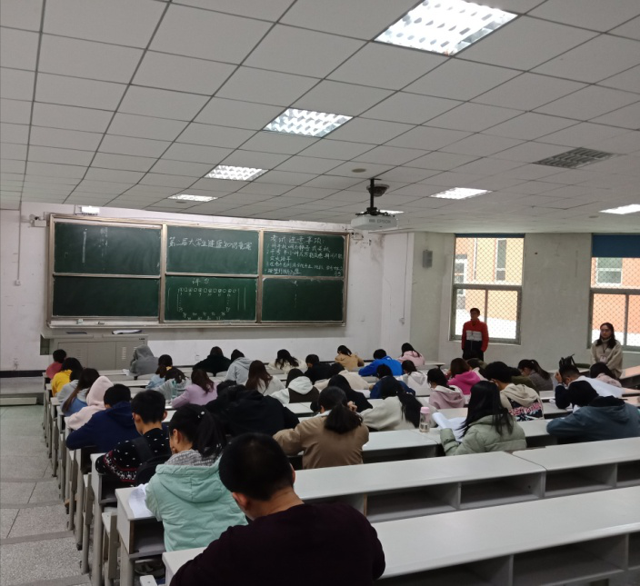 11月6日,大学生健康知识竞赛笔试在4A-104教室举行。全校近100名学生参加此次竞赛笔试。笔试成绩排名前三的同学将参加郫都区第五届大学生健康知识竞赛复赛。