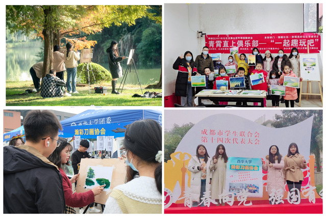 瀚彩刀画协会以研习、创作刀画为主要活动,通过搭建大学生自主学习刀画的平台,提升同学们的审美素养,培养认识美、发现美、创造美的能力,先后举办庆祝中国共产党成立100周年主题刀画展、庆祝西华大学建校60周年刀画展、毕业画展、刀画进社区等特色活动,多次获评成都市百佳社团、西华大学十佳社团等荣誉。