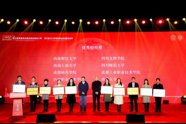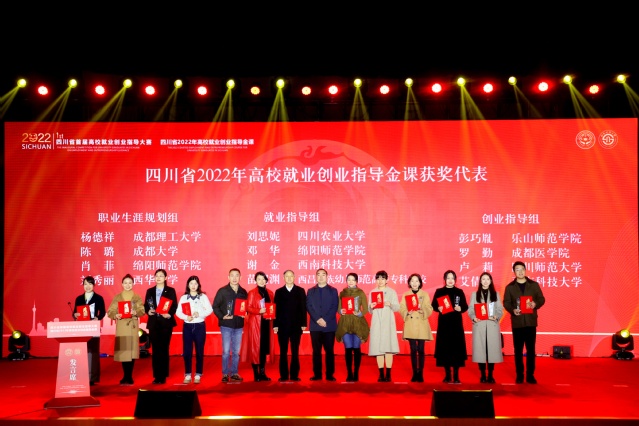 活动现场为大赛及金课获奖代表颁发获奖证书,为获奖高校颁发优秀组织奖。我校教师李婉、钱璐宜、王雁荣获四川省首届高校就业创业指导大赛三等奖,周羿清荣获四川省首届高校就业创业指导大赛优秀奖,同时我校作为四川省首届高校就业创业指导大赛成都片区复赛承办方,高质量完成任务,荣获四川省首届高校就业创业指导大赛优秀组织奖。我校教师刘秀丽《能力探索——神奇的卡片之旅》职业生涯规划课被评为四川省就业创业指导金课。