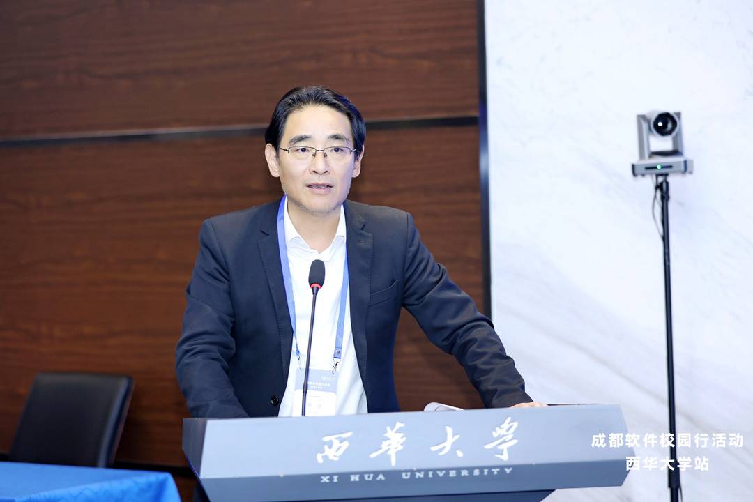 成都市经济和信息化局副局长蒲斌在致辞中表示,“加快建设高质量人才队伍是推动软件产业高质量发展,特别是推动基础软件、工业软件等领域关键技术加快实现突破的关键,产学研合作是培养高素质人才的重要平台,开展成都软件校园行活动,目的就是要搭建一个良好的交流平台,有效促进高校、企业、人才、项目面对面交流,助推软件技术的协同创新和产业化转化。希望在座各位能够借助这个平台,加强合作探讨,以实际行动推动人才培养高质量发展,推动软件关键技术加快突破。”