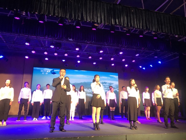 最后,党委宣传部全体老师带来了压轴节目《我爱你,中国》,深情并茂的朗诵引得大家掌声不断,高亢热情的演唱更是让大家激动不已。