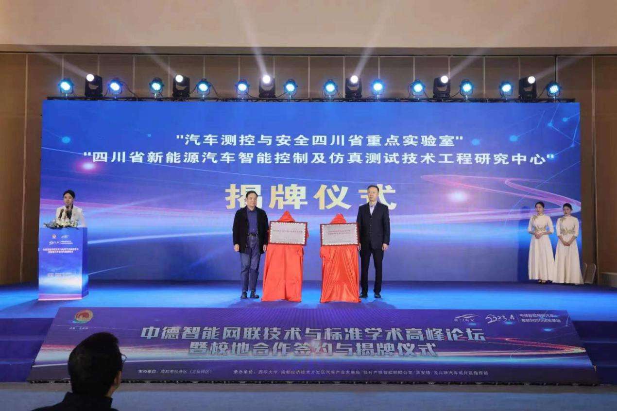 4月7日,首届“中德智能网联技术与标准学术高峰论坛”在四川成都经开区(龙泉驿区)举行。论坛同步举行了成都经开区(龙泉驿区)与西华大学面向科研创新和人才联合培养的校地合作签约仪式暨“汽车测控与安全四川省重点实验室”“四川省新能源汽车智能控制及仿真测试技术工程研究中心”等一批里程碑项目的揭牌仪式。