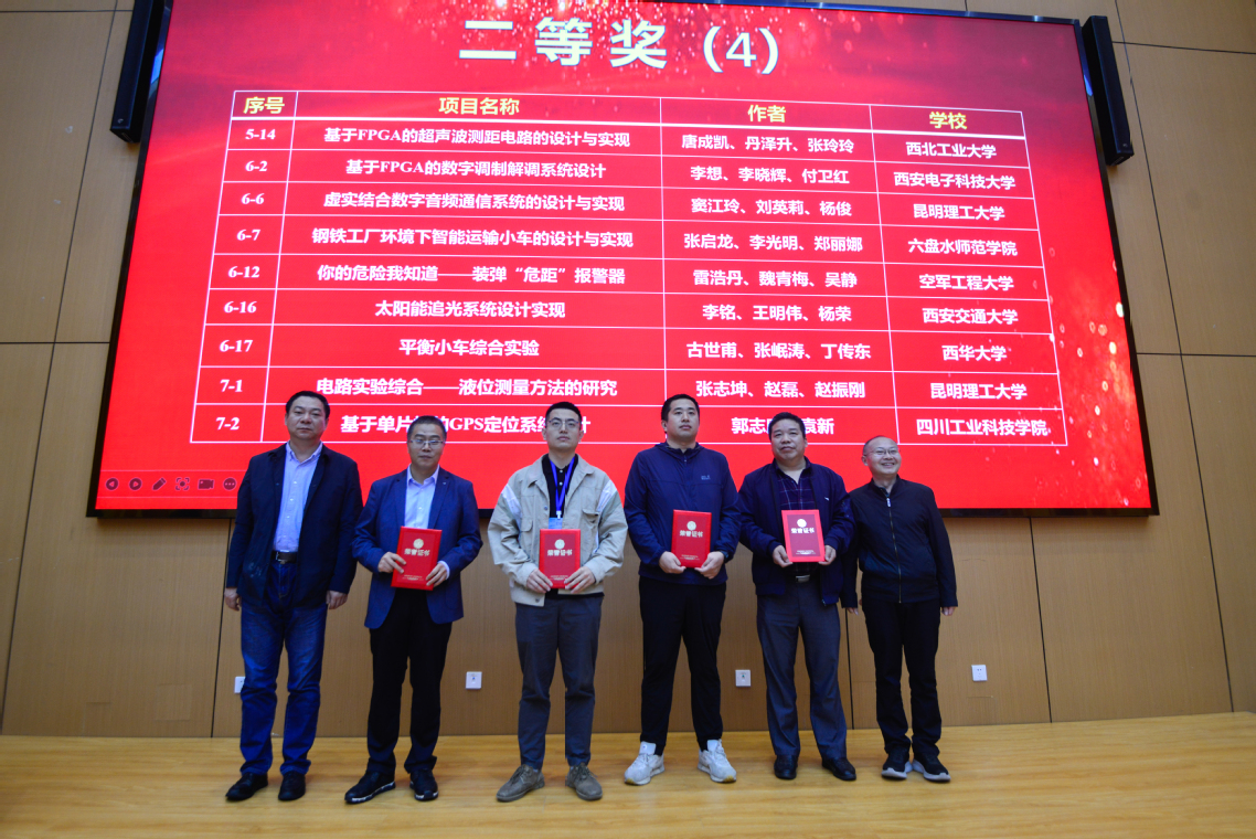 颁奖典礼全国电工电子基础课程实验教学案例设计竞赛2014年起开始举办,目前已被列入全国性教师教学竞赛目录,旨在推动电工电子基础课程实验教学内容研究探索、工程实践、自主创新的改革,促进实验教学水平与教学质量提升,推广各高校实验教学优秀教学资源共享,激发广大教师开展实验教学建设与改革热情。
