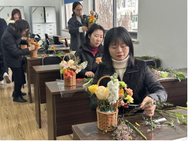 为庆祝第115个“三八”国际劳动妇女节,丰富学院教职工的精神文化生活,3月7日下午,经济学院工会在1A4019开展了“奋进新征程 巾帼绽芳华”花艺沙龙活动。全院女教师及部分男教师积极参与,在花香笑语中共同度过了一个温馨愉快的节日。