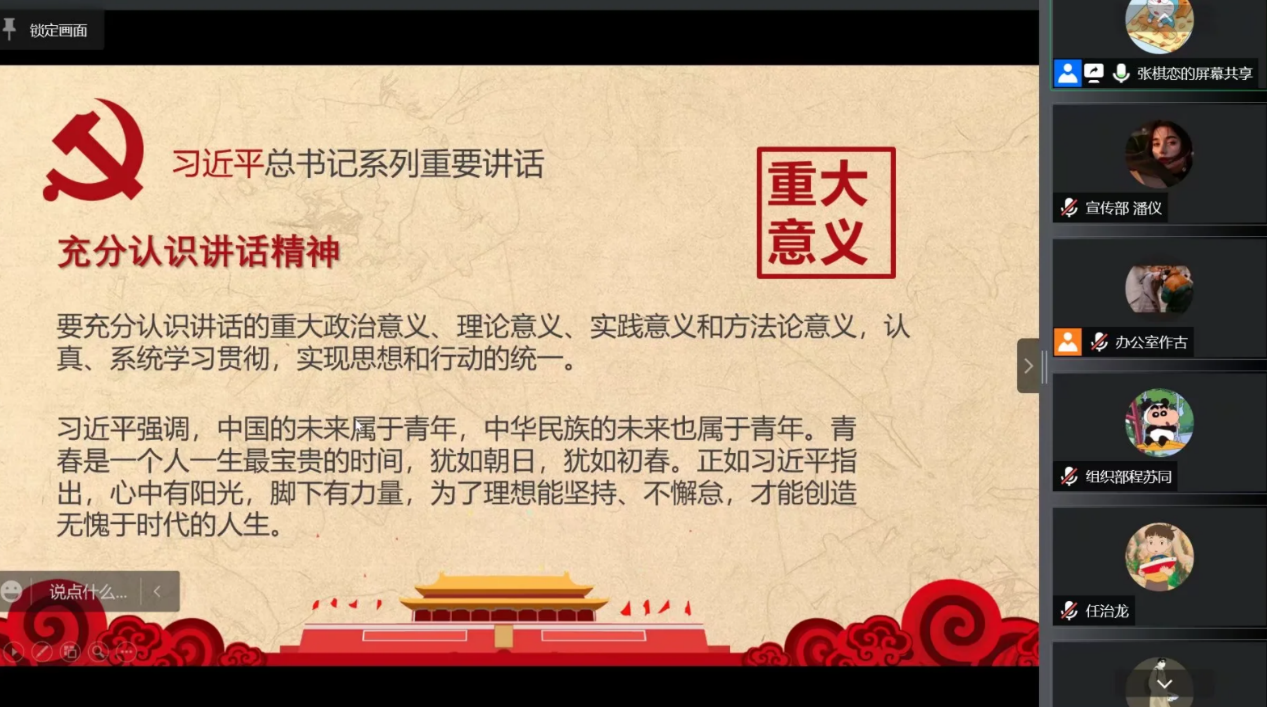 2021年11月20日,经济学院党务工作站于线上召开了以“学精髓,悟真经”为主题的交流会,会议由党务工作站宣传部部长张棋恋主持,王映玥、杨雅麟、唐玉婷、胡剑波等同志参加,应到18人,实到18人。