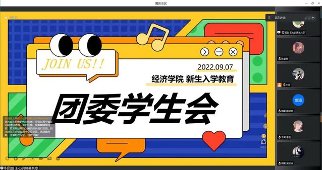 学院2022级新生辅导员牛芳和苟小小、团委学生会主席李悦、团委副书记王心、胡剑波,宋延洁和陈慧琳、学生组织员周小佳以及2022级全体新生共同参与会议。会上分别对所分管的部门从部门简介、部门职能、部门活动、部门干部以及团建活动五个部分进行简要介绍。