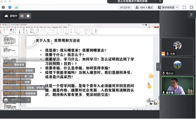 为了提升新生心理素质,协助新生充分认识并了解学院团委学生组织、入党信息和学科竞赛相关专题,9月7日,我院邀请学校心理健康中心王中瑞、王月月老师分别对郫都校区及宜宾校区新生通过腾讯会议从新生如何适应学校校园环境,班级环境,寝室环境,专业学习,人际关系处理以及自我情绪观察和调整方法等方面的讲解,让各位新同学从心理层面对大学学习生活有了更好的准备,在入校后能够更好更快的适应大学学习生活。