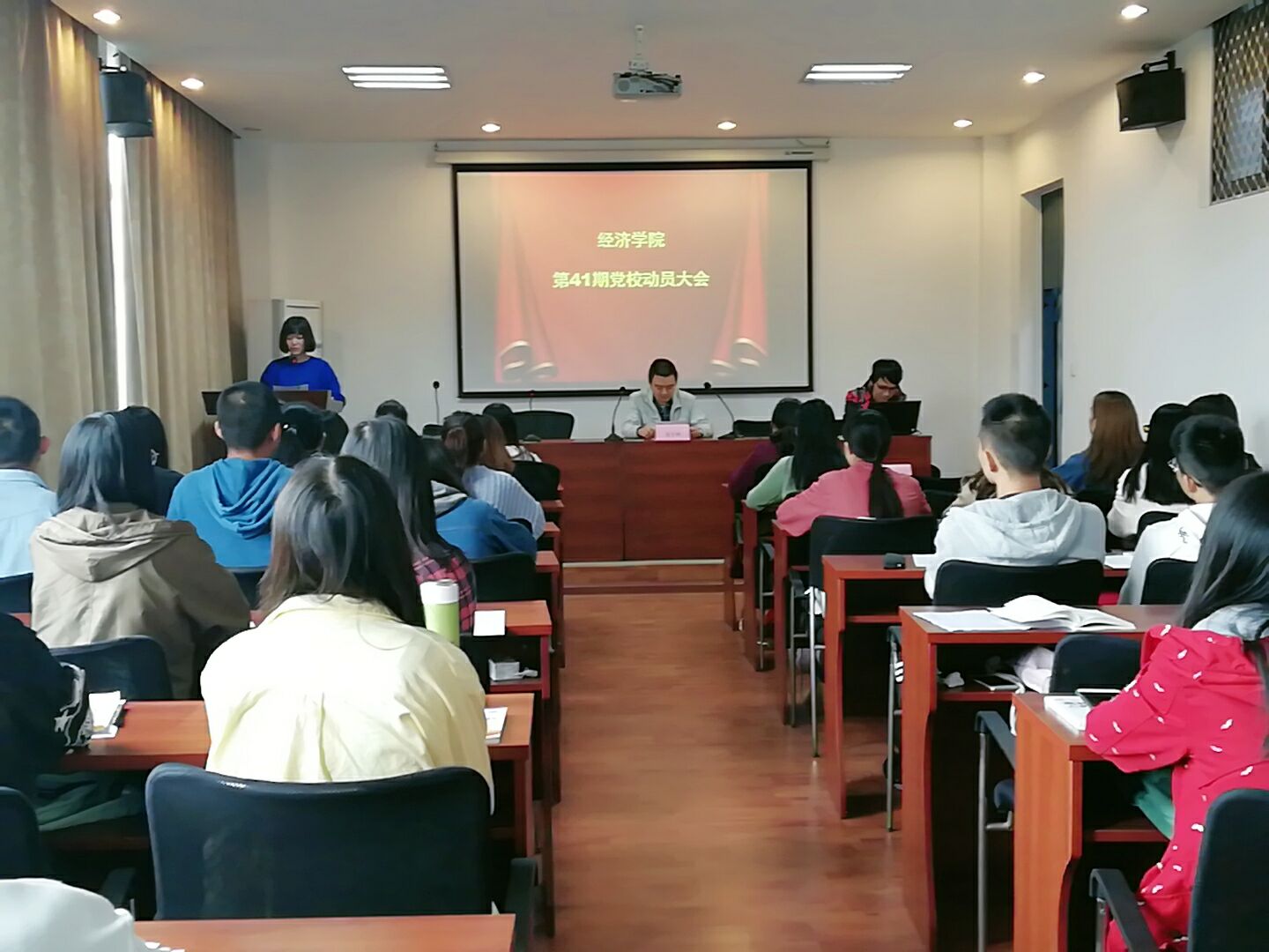 10月12日中午,经济学院第四十一期党校动员大会在1教4036教室召开。全体新学员参加本次动员大会,经济学院党委副书记、纪委书记、副院长易宇峰老师、经济学院辅导员王璇老师等出席大会,大会由第四十一期党校班长蒋春玲同学主持。