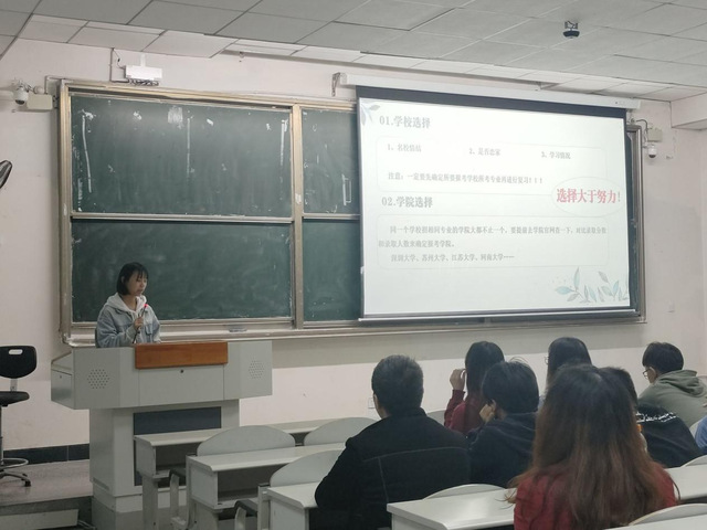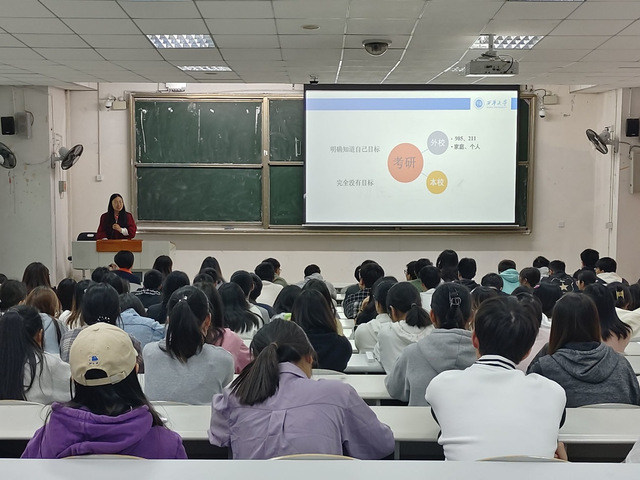 会上,院长王周玉从未来发展和经济形势两个方面阐述了考研的意义,并重点讲解了如何择校的问题。她指出,当今社会越来越重视学历,硕士比学士在未来发展与社会竞争中更具优势和市场竞争力,提升学历,继续深造能促使同学们在成长成才中抢占先机。