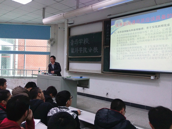 温超老师为同学们作了一次校园新闻写作方法的的培训。“在工作中,我们难免会写一些应用型文体,而在学生工作中,与我们接触最多的就是新闻类稿件。”温超老师结合学校实际情况以及自己的经验,对稿件的标题、导语、正文、结尾做了较为系统全面的讲解。温超老师鼓励学员学习并写作一些基本稿件,培养工科同学的文科素养。