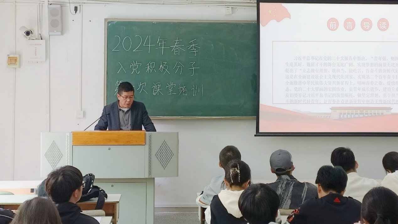 4月10日,能源与动力工程学院党委书记徐元彬在3C202为2024年春季学期党校入党积极分子培训班学员讲了第一次党课,本次党课的主题为《争做新时代好青年,书写青春奋斗答卷》