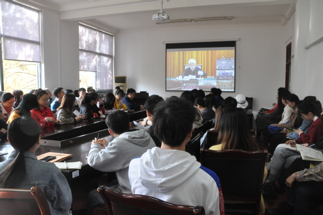 为深入学习贯彻党的十九届五中全会精神,进一步扩大宣讲覆盖面,在教育系统掀起学习贯彻五中全会精神热潮,中央宣讲团成员、教育部党组书记、部长陈宝生同志作了宣讲报告。能源与动力工程学院按照《教育部办公厅关于组织收看学习贯彻党的十九届五中全会精神中央宣讲团报告会视频的通知》要求,于11月19日下午以视频的方式认真收看了报告会,学院部分教师党员及所有学生党员观看视频。