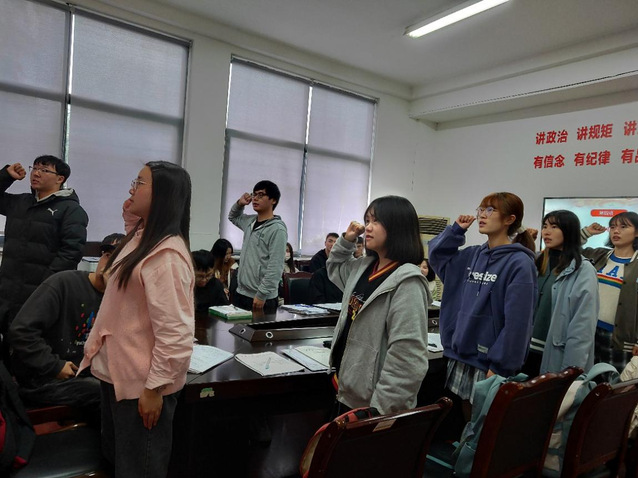 随后,党支部副书记刘志阳同志带领新发展的7名党员同志进行了入党宣誓。最后,党支部书记李亚东同志总结发言。他先是恭喜7名发展对象加入中国共产党,并希望他们在接下来的学习、工作和生活当中能够继续戒骄戒躁,时刻以一名党员的身份严格要求和规范自己的行为,充分发挥先锋模范作用,继续践行全心全意为人民服务的宗旨,学思践行,全面发展。