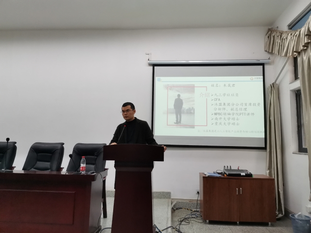 2019年12月5日下午,能源与动力工程学院在1-B201教室举办了以“产业发展趋势以及大学生就业形势分析”为主题的西华讲堂。本次讲堂邀请了现任沐盟集团分公司首席投资分析师、副总经理的朱冕君,能源与动力工程学院2020届毕业生和团委学生会全体成员参加此次活动,讲座由学院就业联系人、毕业班辅导员肖寒月主持。
