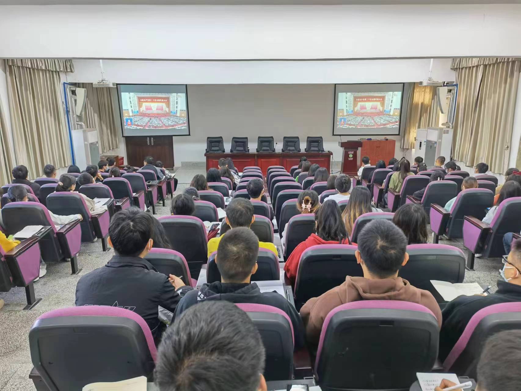 学院党委中心组成员、党支部书记、师生党员代表在1A321集中收看