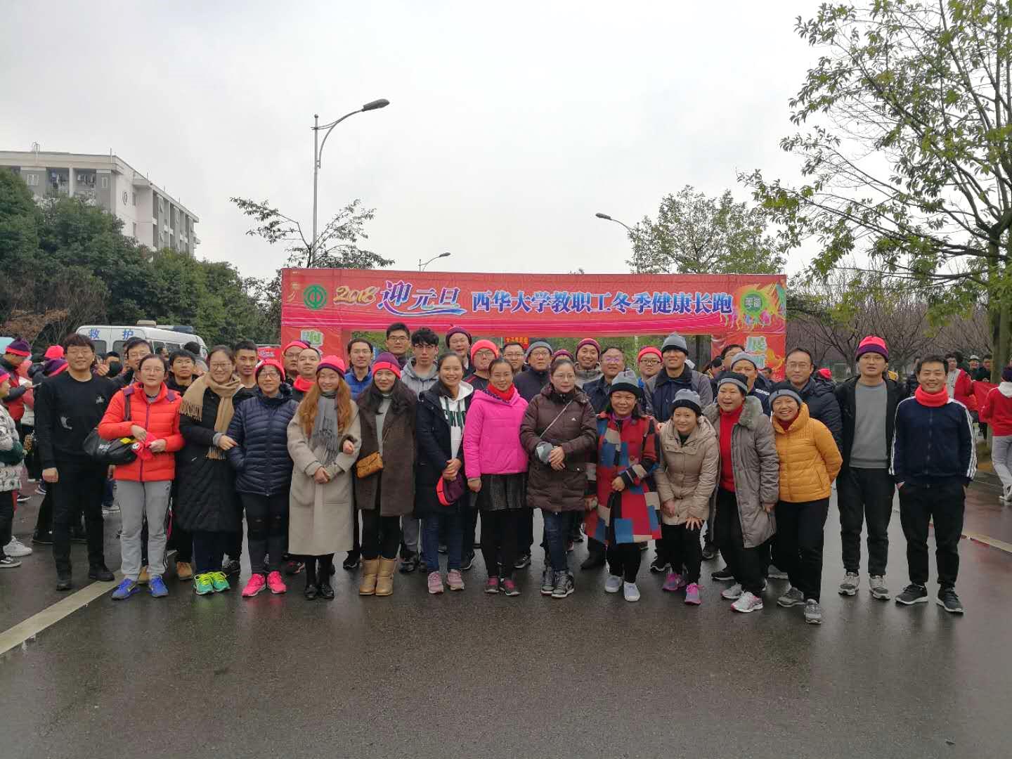 12月27日下午2:30,西华大学2018年教职工“迎元旦”冬季长跑比赛在新校区举行。比赛在蒙蒙细雨中进行,寒冷的天气没有阻止能动学院教师参加冬季锻炼的热情,共有37名教师参加了男子青年、男子中年、女子青年、女子中年四个组别比赛。