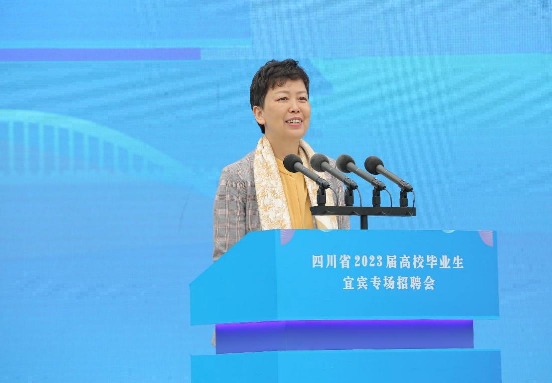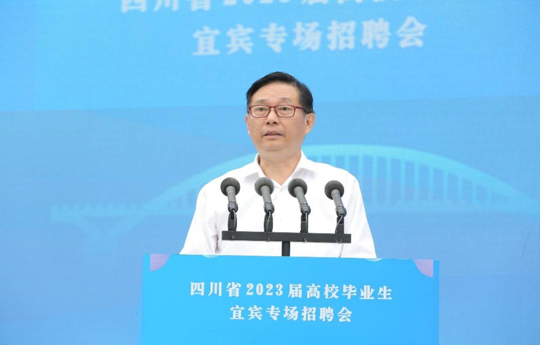 在招聘会启动仪式上,陈朝先指出就业事关民生福祉、经济发展,事关社会稳定、国家未来。今年,我省2023届高校毕业生总量和增量再创历史新高,面对复杂的就业形势,省委教育工委、教育厅访企拓岗强供给,优化服务提质效,强化责任抓落实,截至目前,全省2023届高校毕业生就业情况高于全国平均水平。他指出,今年以来,宜宾市委、市政府通过深化校地合作、创新人才培养模式、搭建人才发展平台等多种举措,进一步强化政策保障,切实担负主体责任,深挖本地岗位资源,不断提升人才供需匹配精准度,在宜高校毕业生及早就业、高质量就业,为全省高校毕业生就业大局稳定作出了积极贡献。他希望各高校把握机遇,把开展主题教育和就业工作结合起来,进一步拓展岗位资源,加强市场化社会化就业渠道开拓力度;希望广大用人单位多送岗位、多送资源,助力四川高校毕业生就业乐业、建功立业;希望同学们志存高远,脚踏实地、理性就业,客观看待个人条件和社会需求,从实际出发科学理性选择职业和工作岗位。