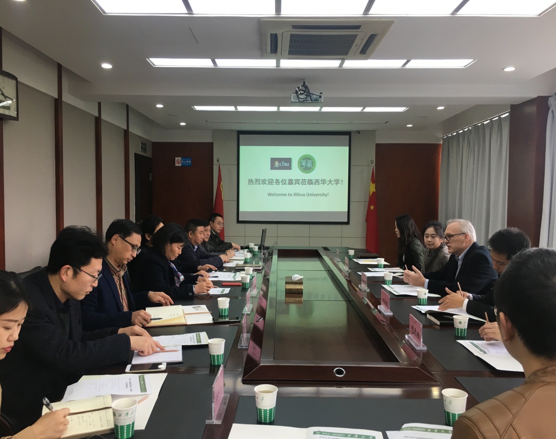 费校长首先代表学校对Larry Linamen副校长、新尚集团刘总一行的再次来访表示热烈欢迎。他表示,去年10月份,两校的会面取得了丰硕的成果,成功签署了校际合作协议,在教师互派,学生交换以及学位项目等方面达成了合作共识,尤其是针对建筑、设计专业的2+3本硕连读项目。目前,这个项目在双方的努力之下,已经开展了课程对接等工作,相信在不久的将来就可以落地。同时,费校特别感谢了新尚集团对我们两校之间合作给予的支持和帮助,尤其是针对出国留学学生的奖学金政策。他表示,相信新尚集团的帮助对我们两校合作项目的落地有着巨大的推动作用,同时也能够激励更多的西华学子出国留学。