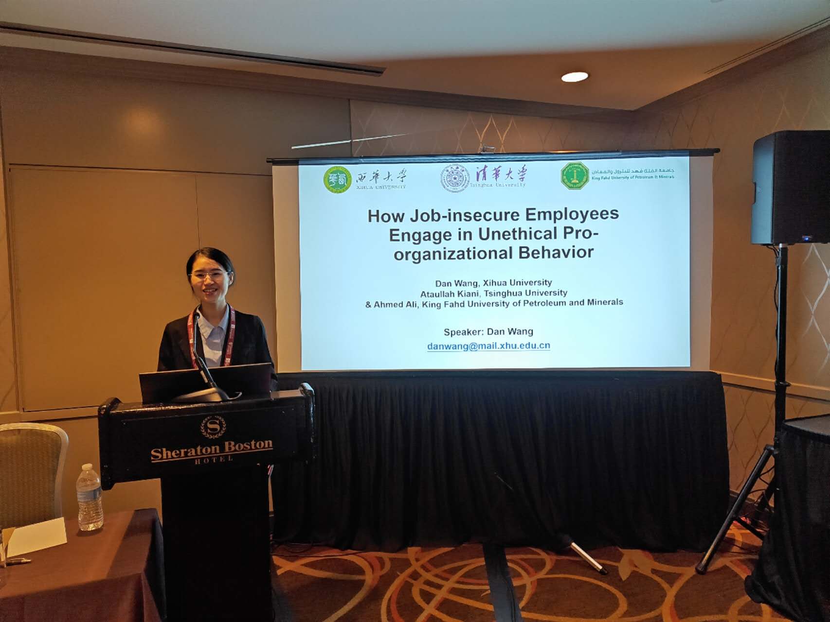 8月4日至8日,第83届美国管理学会(Academy of Management,AOM)年会在美国波士顿召开。管理学院工商管理系人力资源管理专业教师王丹与清华大学博士后Ataullah Kiani,以及King Fahd University of Petroleum and Minerals学者Ahmed Ali合作的研究“How Job-insecure Employees Engage in Unethical Pro-Organizational Behavior?”经双盲评审,被第83届AOM年会接收,并于8月7日在Unethical Pro-Organizational Behavior Session上作了论文汇报交流。