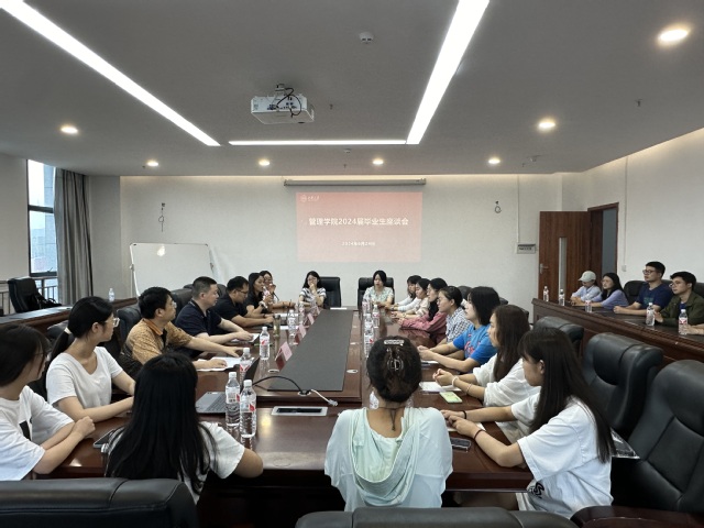为深化与2024届本科毕业生的沟通交流,传递学院的深切祝福,听取毕业生的成长感悟以及对学院未来发展的宝贵建议,促进学院高质量发展,6月24日下午,管理学院在宜宾校区一教714会议室召开2024届本科毕业生座谈会。院长赵修文,各系主任,毕业班辅导员和毕业生代表参加会议。