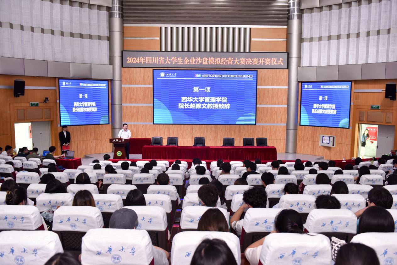 75日下午16时,大赛开赛仪式在西华大学四教报告厅举行。西华大学管理学院院长赵修文致辞,表达了对各参赛队伍指导教师和学生的祝贺与欢迎。赵修文指出,本次大赛自启动以来,得到了全省各大本科院校的积极响应和广泛参与。希望同学们通过这次大赛,不仅能够提升自己的专业技能,还能够增强团队协作能力,培养面对挑战的勇气和解决问题的智慧。随后,大赛进行了抽签与答疑环节。