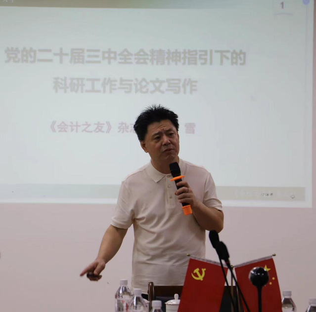 2024年9月22日,《会计之友》杂志总编李笑雪,在管理学院3E402会议室作了题为“党的二十届三中全会精神指引下的科研工作与论文写作”学术讲座,讲座由管理学院院长赵修文教授主持。学院领导班子成员、专业教师和研究生参与本次讲座。