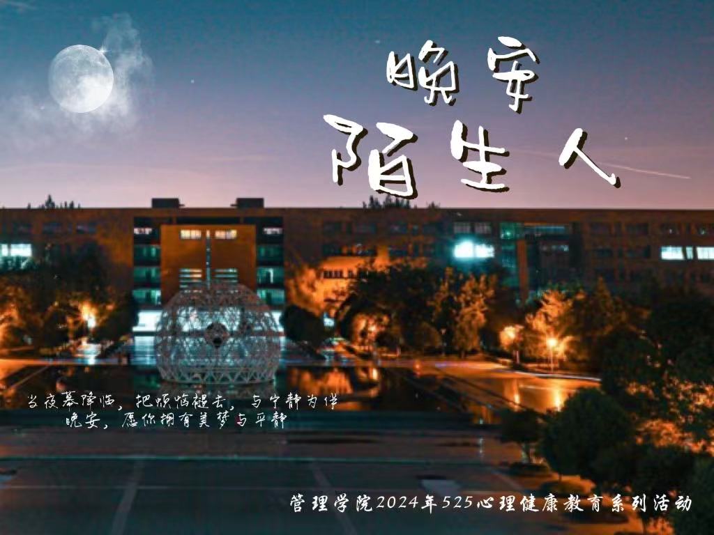 为进一步倡导同学们在学习、生活与工作等方面养成规律的作息习惯,保持良好的精神状态与身心素质。近日,管理学院5·25心理特色活动“晚安,陌生人”面向全校师生拉开帷幕。